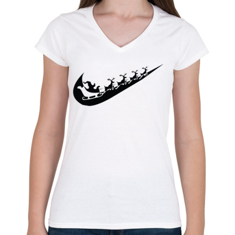 1 kép PRINTFASHION nike márkaparódia fekete - Női V-nyakú póló - Fehér