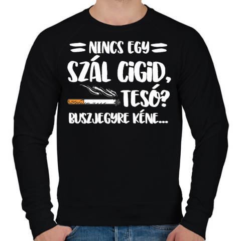 1 kép PRINTFASHION Nincs egy szál cigid, Tesó? Buszjegyre kéne... - Férfi pulóver - Fekete
