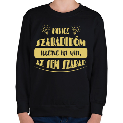 1 kép PRINTFASHION Nincs szabadidőm - Gyerek pulóver - Fekete