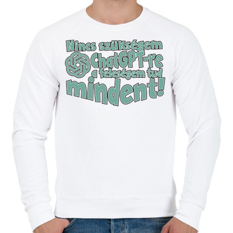 1 kép PRINTFASHION Nincs szükségem chat gptre a feleségem tud mindent - Férfi pulóver - Fehér