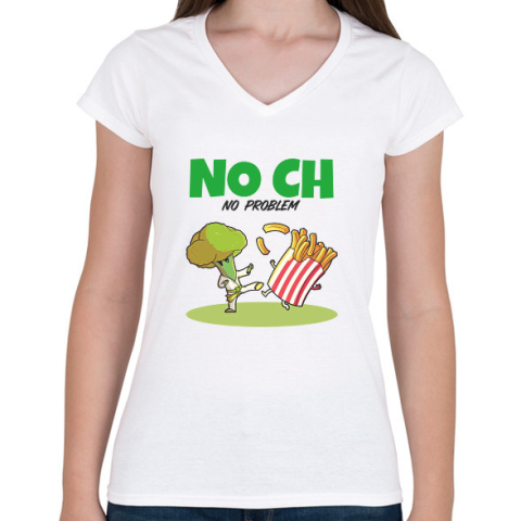 1 kép PRINTFASHION NO CH - Női V-nyakú póló - Fehér