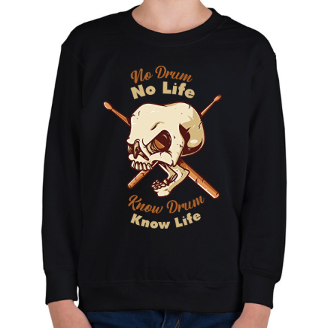 1 kép PRINTFASHION No Drum, No Life - Gyerek pulóver - Fekete