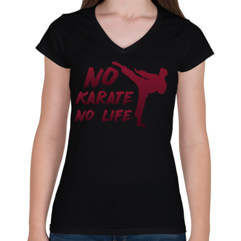1 kép PRINTFASHION No karate no life - Női V-nyakú póló - Fekete