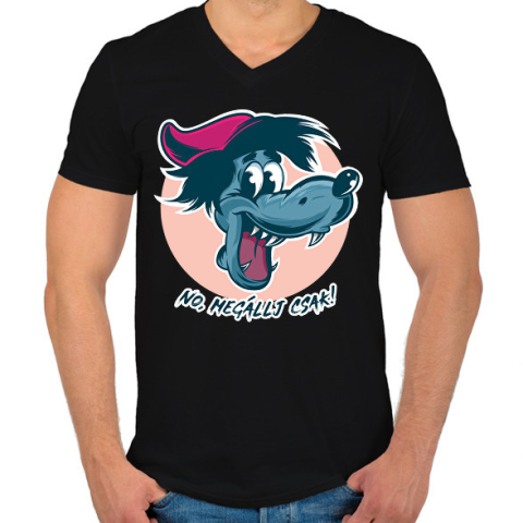 1 kép PRINTFASHION No, megállj csak! - Férfi V-nyakú póló - Fekete
