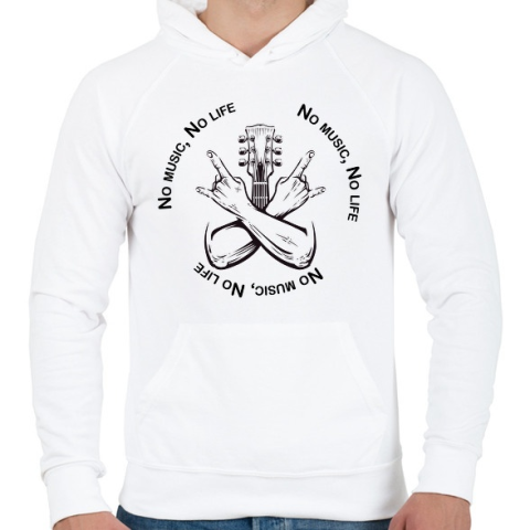 1 kép PRINTFASHION No music, No life - Gitáros minta - Férfi kapucnis pulóver - Fehér