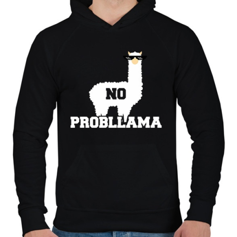 1 kép PRINTFASHION No probLama - Férfi kapucnis pulóver - Fekete