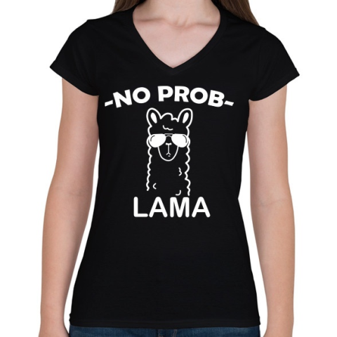 1 kép PRINTFASHION No problama - Női V-nyakú póló - Fekete
