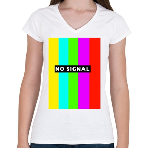 1 kép PRINTFASHION no signal - Női V-nyakú póló - Fehér