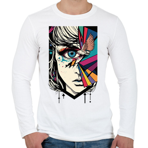 1 kép PRINTFASHION Női szem és madár - Férfi hosszú ujjú póló - Fehér