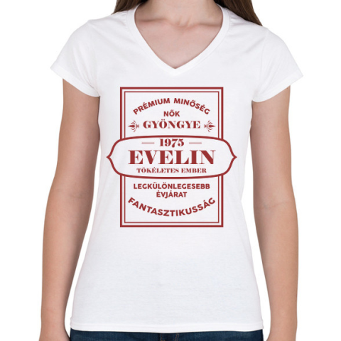 1 kép PRINTFASHION Nők gyöngye - Névvel, évszámmal - Női V-nyakú póló - Fehér