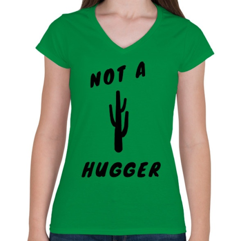 1 kép PRINTFASHION NOT A HUGGER - Női V-nyakú póló - Zöld