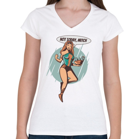 1 kép PRINTFASHION Not today Mitch - Női V-nyakú póló - Fehér