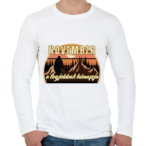 1 kép PRINTFASHION November a legjobbak hónapja 1 - Férfi hosszú ujjú póló - Fehér