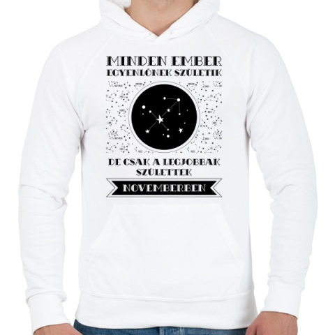 1 kép PRINTFASHION November: Nyilas - Férfi kapucnis pulóver - Fehér