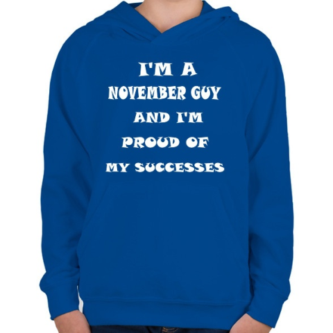1 kép PRINTFASHION Novemberi vagyok és büszke vagyok a sikereimre - Gyerek kapucnis pulóver - Királykék