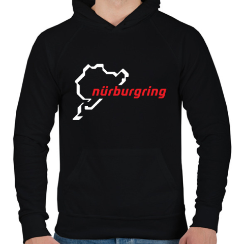 1 kép PRINTFASHION Nürburgring fehér - Férfi kapucnis pulóver - Fekete