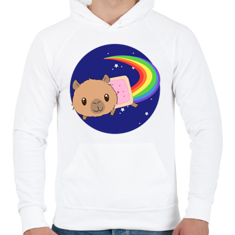 1 kép PRINTFASHION Nyan cat capybara - Férfi kapucnis pulóver - Fehér