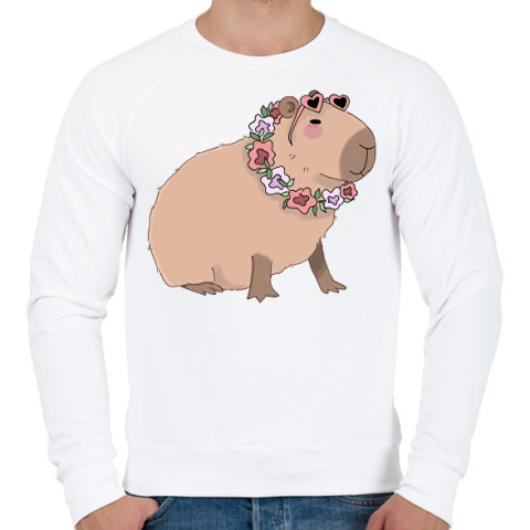 1 kép PRINTFASHION Nyaralós capybara - Férfi pulóver - Fehér