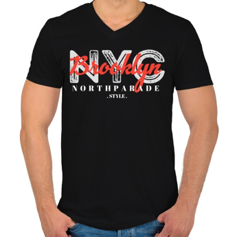 1 kép PRINTFASHION NYC Brooklyn - Férfi V-nyakú póló - Fekete