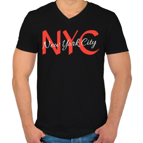 1 kép PRINTFASHION Nyc - Férfi V-nyakú póló - Fekete