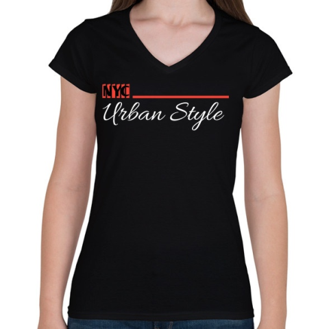 1 kép PRINTFASHION NYC - Női V-nyakú póló - Fekete
