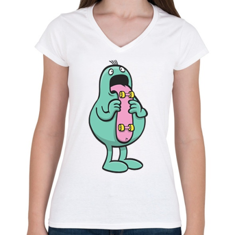 1 kép PRINTFASHION Nyelves - Női V-nyakú póló - Fehér