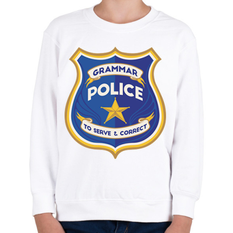 1 kép PRINTFASHION Nyelvtan rendőrség - Gyerek pulóver - Fehér