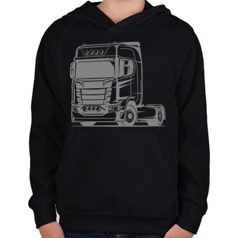 1 kép PRINTFASHION Nyergesvontató - Gyerek kapucnis pulóver - Fekete