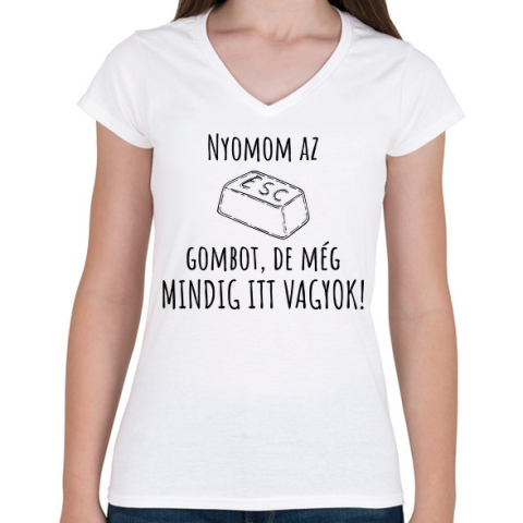 1 kép PRINTFASHION Nyomom az ESC gombot - Női V-nyakú póló - Fehér