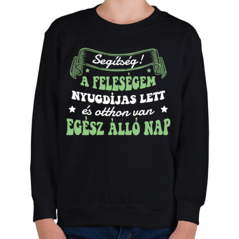 1 kép PRINTFASHION Nyugdíjas feleségem van - Gyerek pulóver - Fekete
