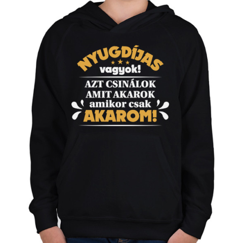 1 kép PRINTFASHION Nyugdíjas vagyok! - Gyerek kapucnis pulóver - Fekete