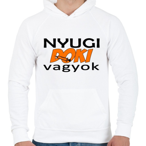 1 kép PRINTFASHION Nyugi Doki vagyok - Férfi kapucnis pulóver - Fehér