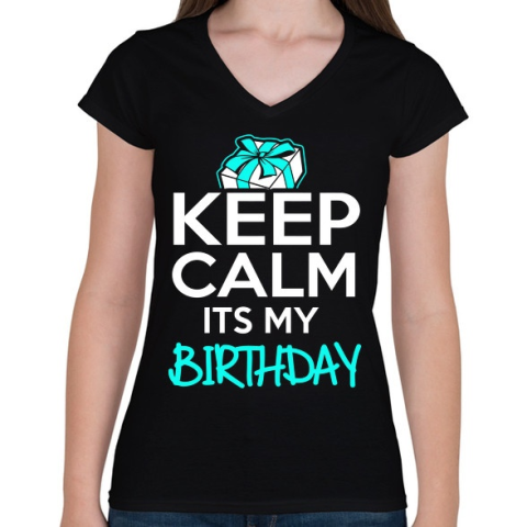 1 kép PRINTFASHION Nyugi, ez az én szülinapom - Női V-nyakú póló - Fekete