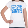 1 kép PRINTFASHION Nyugodj le és moss kezet! - Női póló - Fehér