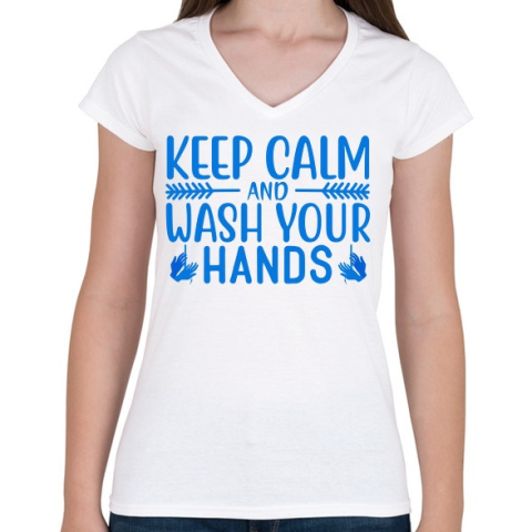 1 kép PRINTFASHION Nyugodj le és moss kezet! - Női V-nyakú póló - Fehér