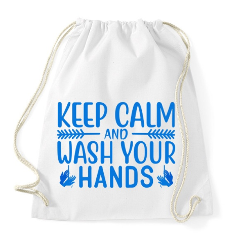 1 kép PRINTFASHION Nyugodj le és moss kezet! - Sportzsák, Tornazsák - Fehér