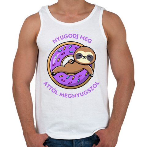 1 kép PRINTFASHION Nyugodj meg, attól megnyugszol! - Vicces fánkos lajháros minta - Férfi atléta - Fehér