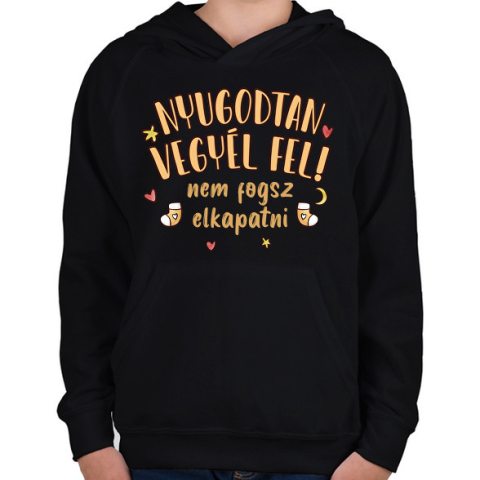 1 kép PRINTFASHION Nyugodtan vegyél fel! - Gyerek kapucnis pulóver - Fekete