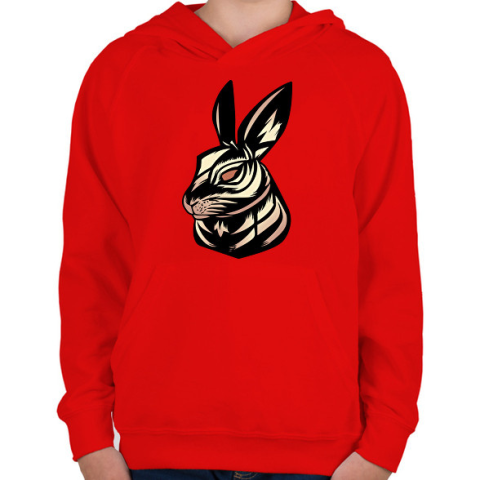 1 kép PRINTFASHION Nyúl tetoválás - Gyerek kapucnis pulóver - Piros