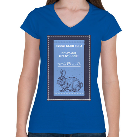 1 kép PRINTFASHION Nyúlszőr - Női V-nyakú póló - Királykék