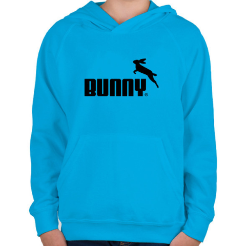 1 kép PRINTFASHION Nyuszi logó - Gyerek kapucnis pulóver - Azúrkék