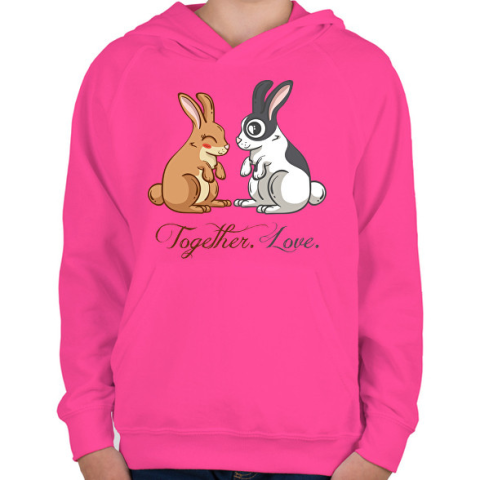 1 kép PRINTFASHION Nyuszi szerelem - Gyerek kapucnis pulóver - Fukszia