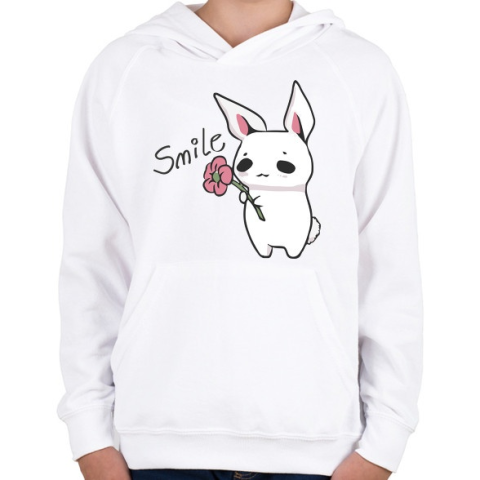 1 kép PRINTFASHION Nyuszi Virággal - Mosolyogj - Gyerek kapucnis pulóver - Fehér