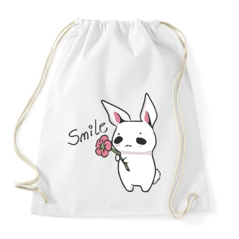 1 kép PRINTFASHION Nyuszi Virággal - Mosolyogj - Sportzsák, Tornazsák - Fehér