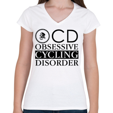 1 kép PRINTFASHION OCD - Biciklis - Női V-nyakú póló - Fehér