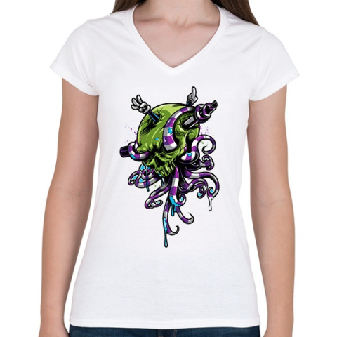 1 kép PRINTFASHION Octopus Tentacle - Női V-nyakú póló - Fehér