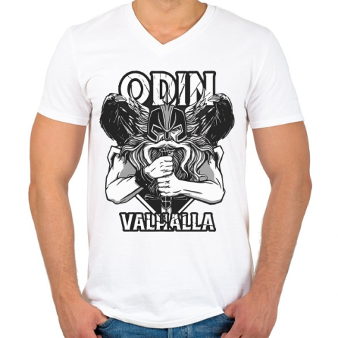 PRINTFASHION Odin Walhalla - Férfi V-nyakú póló - Fehér férfi póló árgrafikon