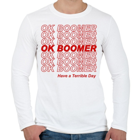 1 kép PRINTFASHION ok boomer - Férfi hosszú ujjú póló - Fehér