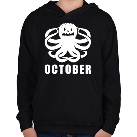 1 kép PRINTFASHION Október - Gyerek kapucnis pulóver - Fekete