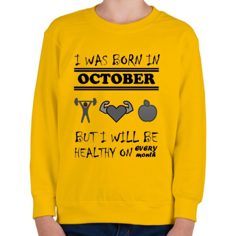 1 kép PRINTFASHION Októberben születtem de minden hónapban egészségesen élek - Gyerek pulóver - Sárga